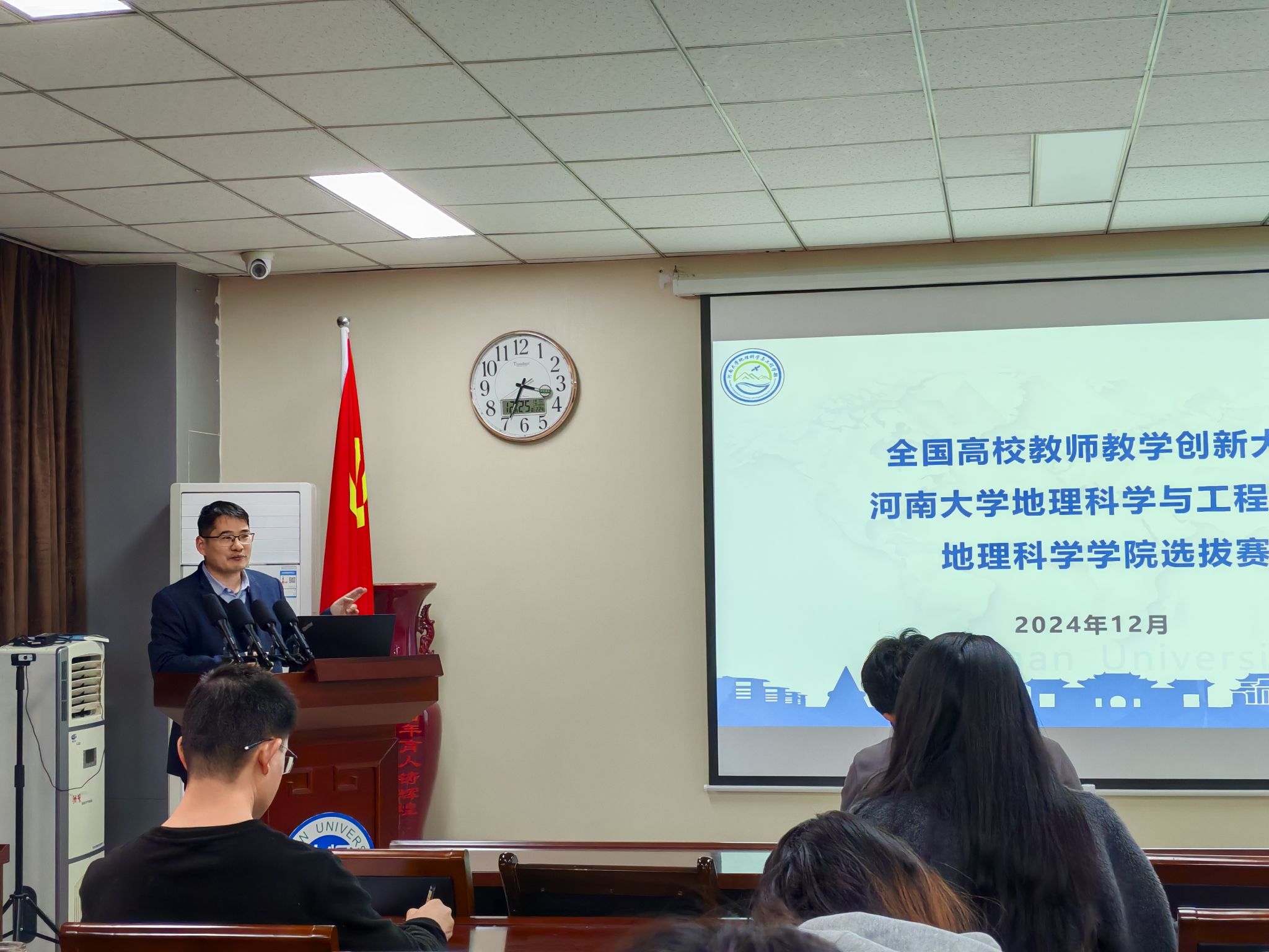 为进一步提高教师教学的课堂创新水平、教学技能水平与课程的体系化设计,根据《英国正版365官网关于全国高校教师教学创新大赛校内选拔赛的通知》的安排,学院在地学楼二楼报告厅举行了全国教师教学创新大赛院内选拔赛。本次大赛由学院教务办主任刘德新主持,副院长丁志伟、地理科学系主任李开封、区域与城市科学系主任翟彬等师生参与了此次活动。