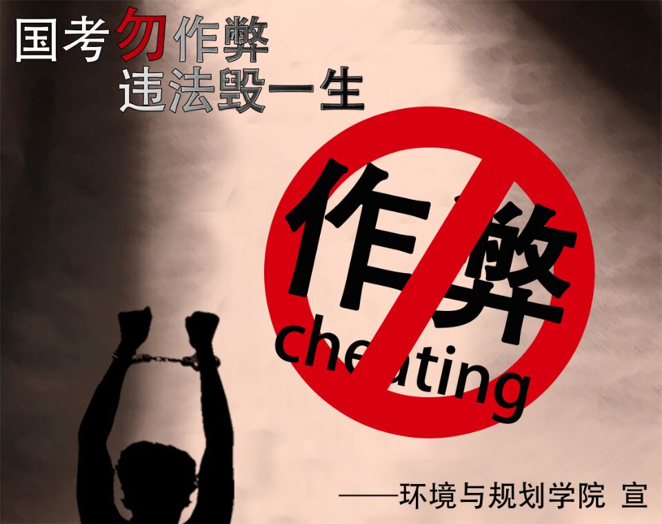 为加强考试期间学生管理,杜绝作弊行为,12月15日环境与规划学院开展了“国考勿作弊,违法毁一生”的主题教育活动,分年级、班级对学生进行诚信教育。