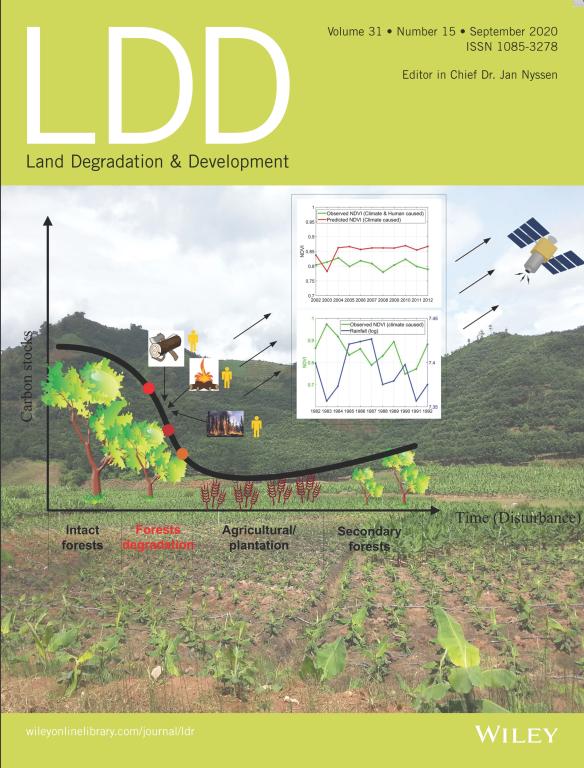 近日,环境与规划学院卢鹤立教授课题组在森林退化遥感监测方面取得重要研究进展,相关成果被《Land Degradation & Development》选为期刊封面(https://onlinelibrary.wiley.com/toc/1099145x/2020/31/15)。