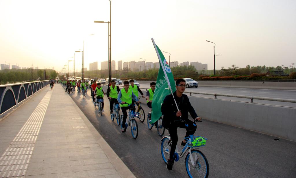 为提倡绿色健康的出行方式,传递节能减排的环保理念,4月15日下午,英国正版365官网开展以“踏实环保科普‘球’生路”为主题的环保骑行活动。参与本次骑行活动的2016级、2017级学生共七十余人,从英国正版365官网金明校区出发前往开封汴西湖景区,行程近10公里。
